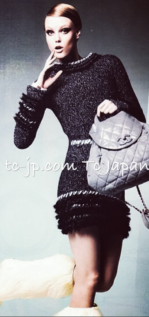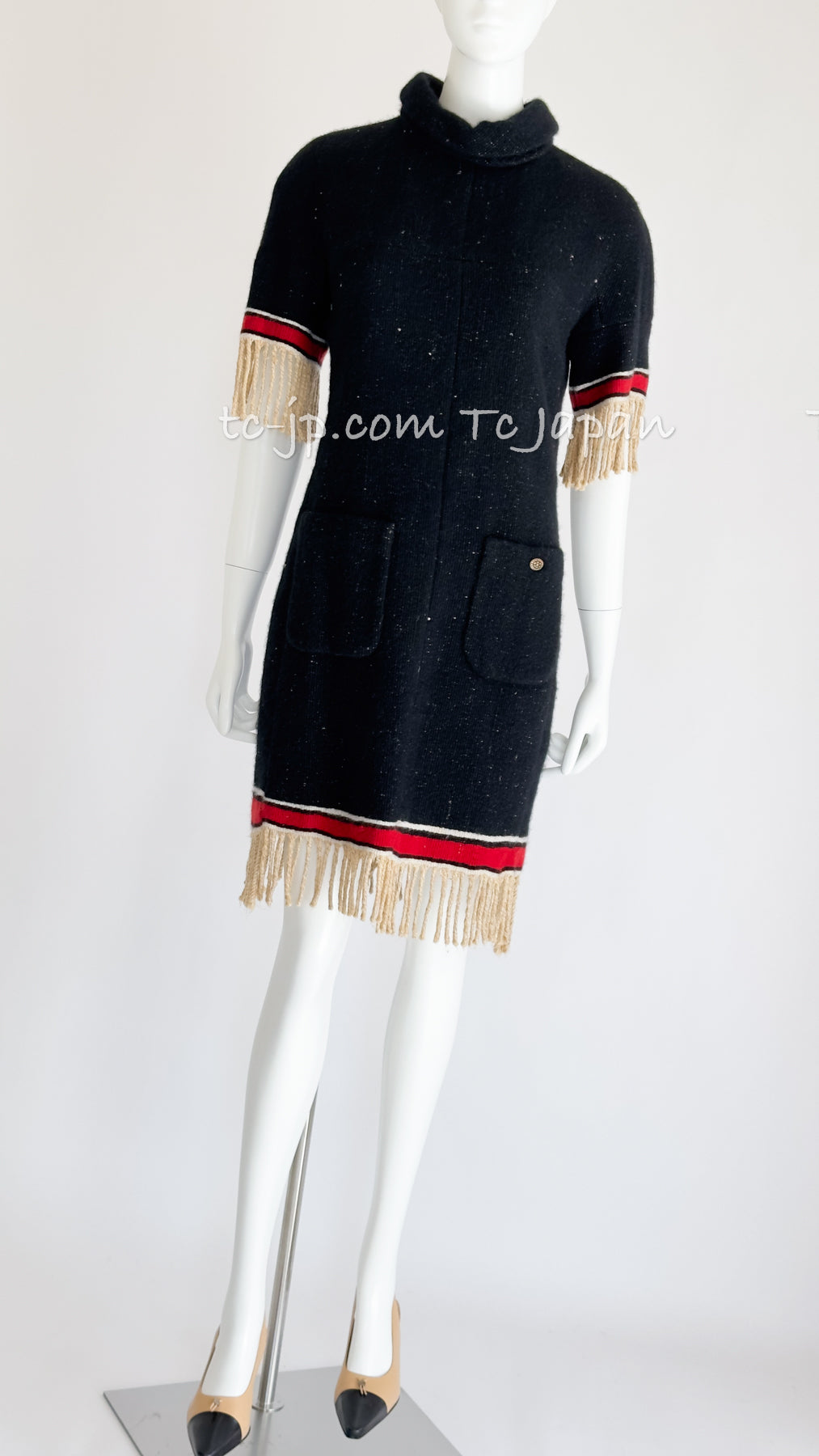 CHANEL 10A Black Fringe Trim Cashmere Silk Dress Jessica Alba 38 40 シャネル ブラック フリンジ トリム カシミア シルク ワンピース 安室奈美恵さん 即発