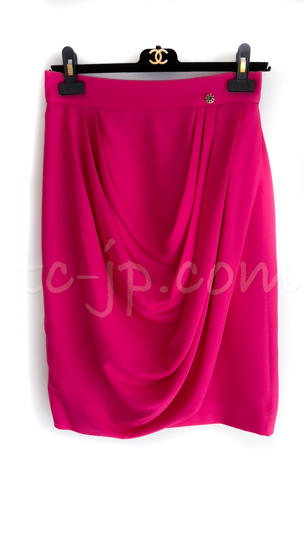 CHANEL 12PF Pink Draped Elegant Silk Skirt 38 シャネル ピンク ドレープ エレガント シルク スカート 即発