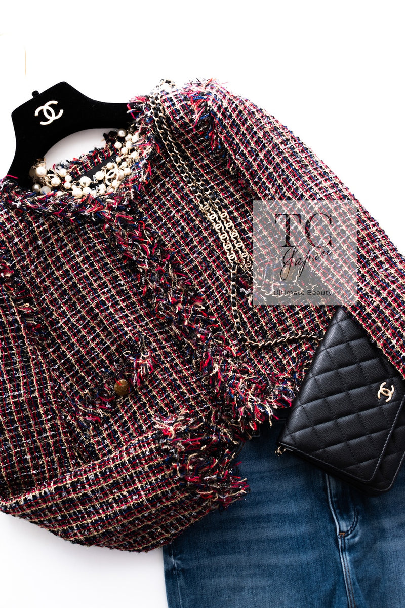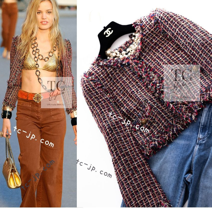 CHANEL 11C Red Black Metalic Lesage Cropped Jacket 34 シャネル レッド ブラック メタリック ルサージュ ジャケット 即発