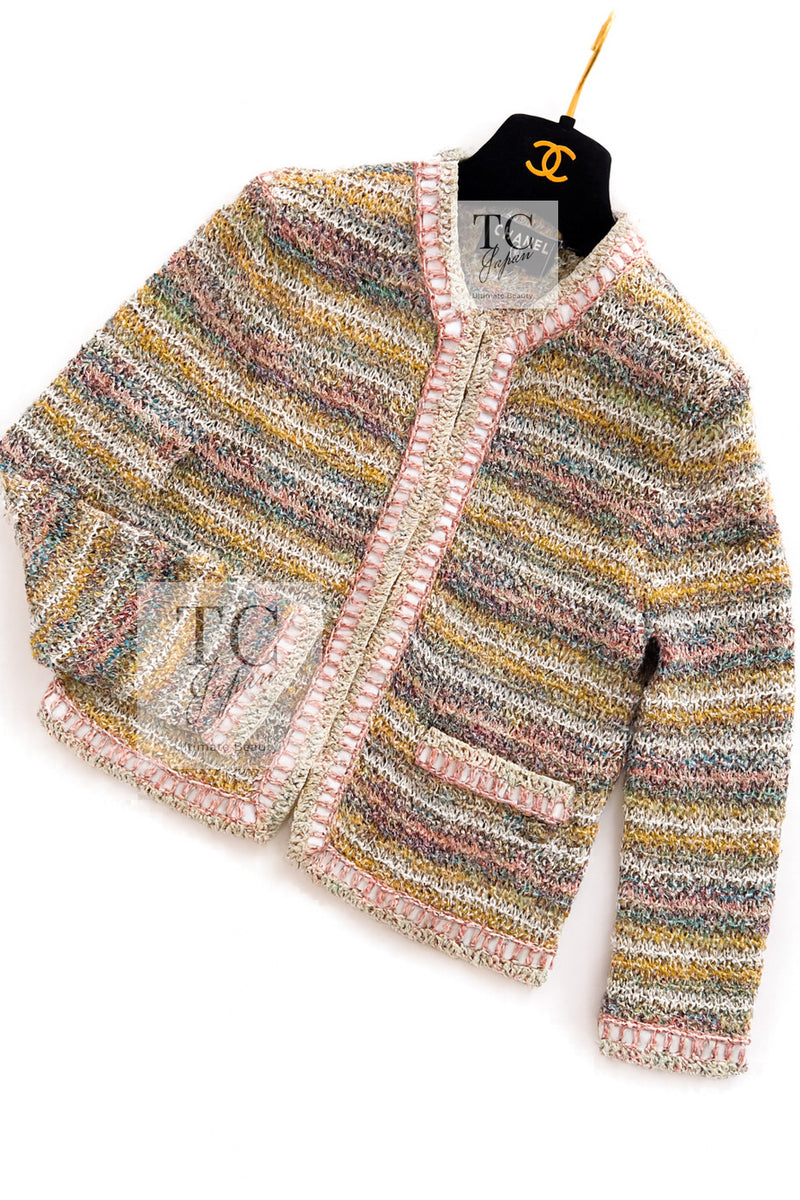 CHANEL 17C Creme Marigold Multi Cotton Cardigan 34 36 シャネル クリーム マリゴールド コットン ストレッチ テープ トリム カーディガン 即発