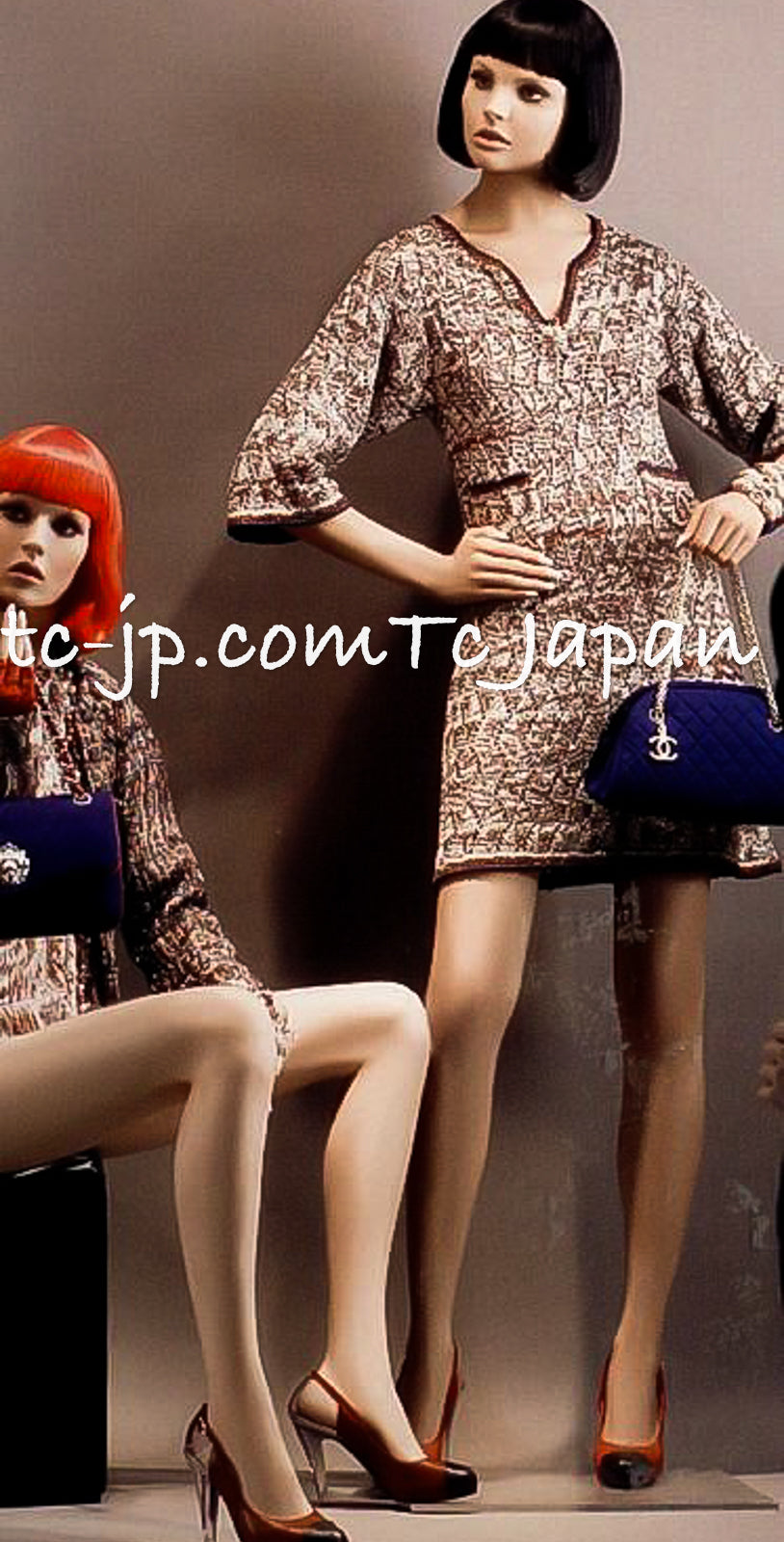 CHANEL 11S Brown Orange Navy CC Logo Knit Dress 34 シャネル ブラウン オレンジ CC ロゴ ニット ワンピース 即発