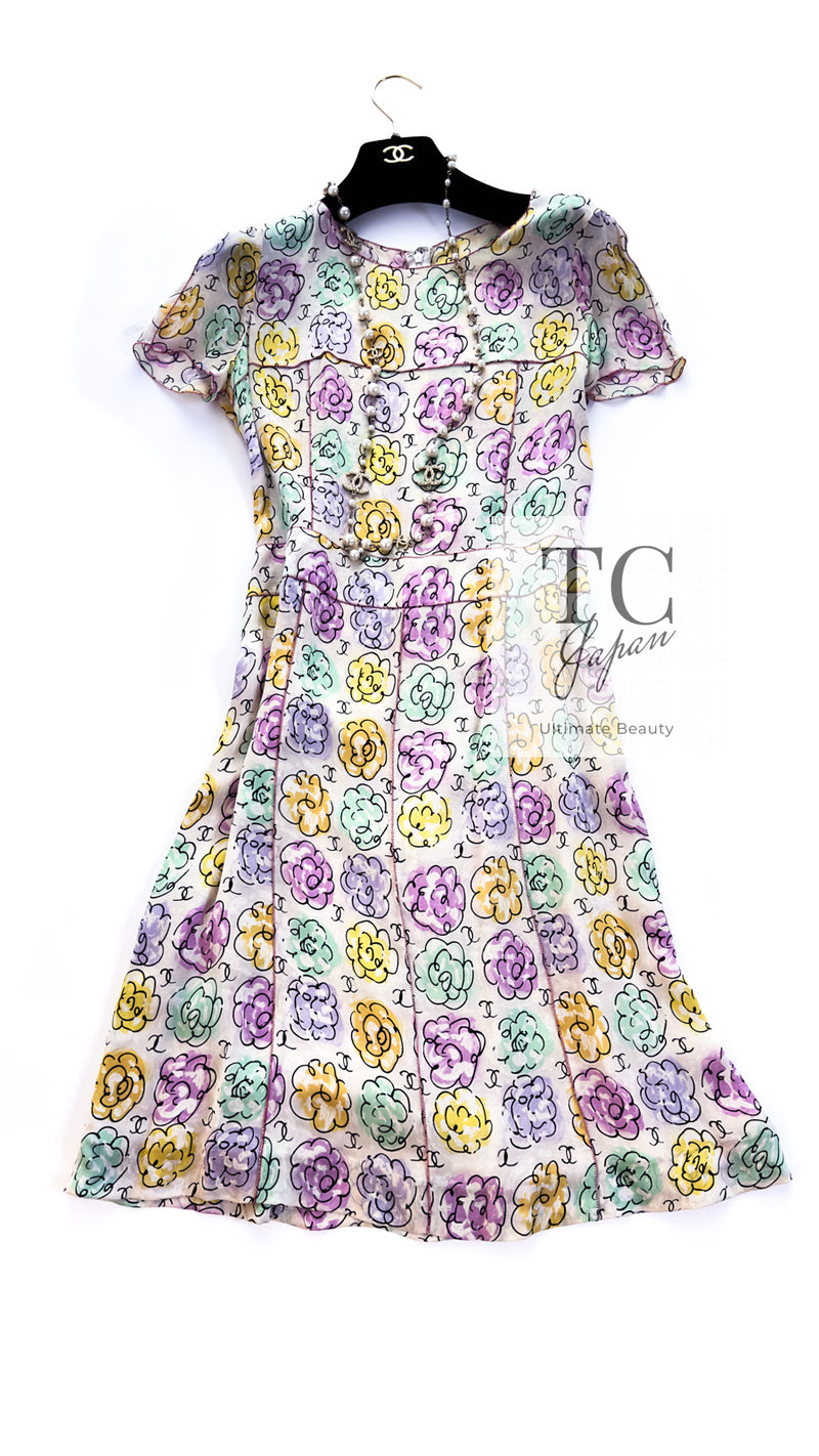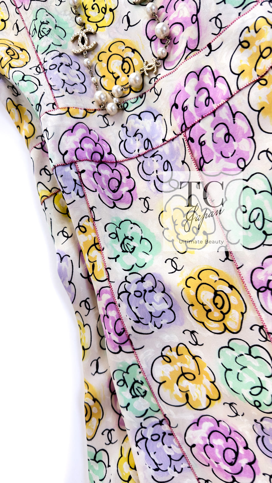 CHANEL 98S Vintage CC Logo Floral Pattern Ivory Silk 100% Dress 36 38 シャネル ヴィンテージ CCロゴ 花柄 アイボリー シルク100% ワンピース 即発