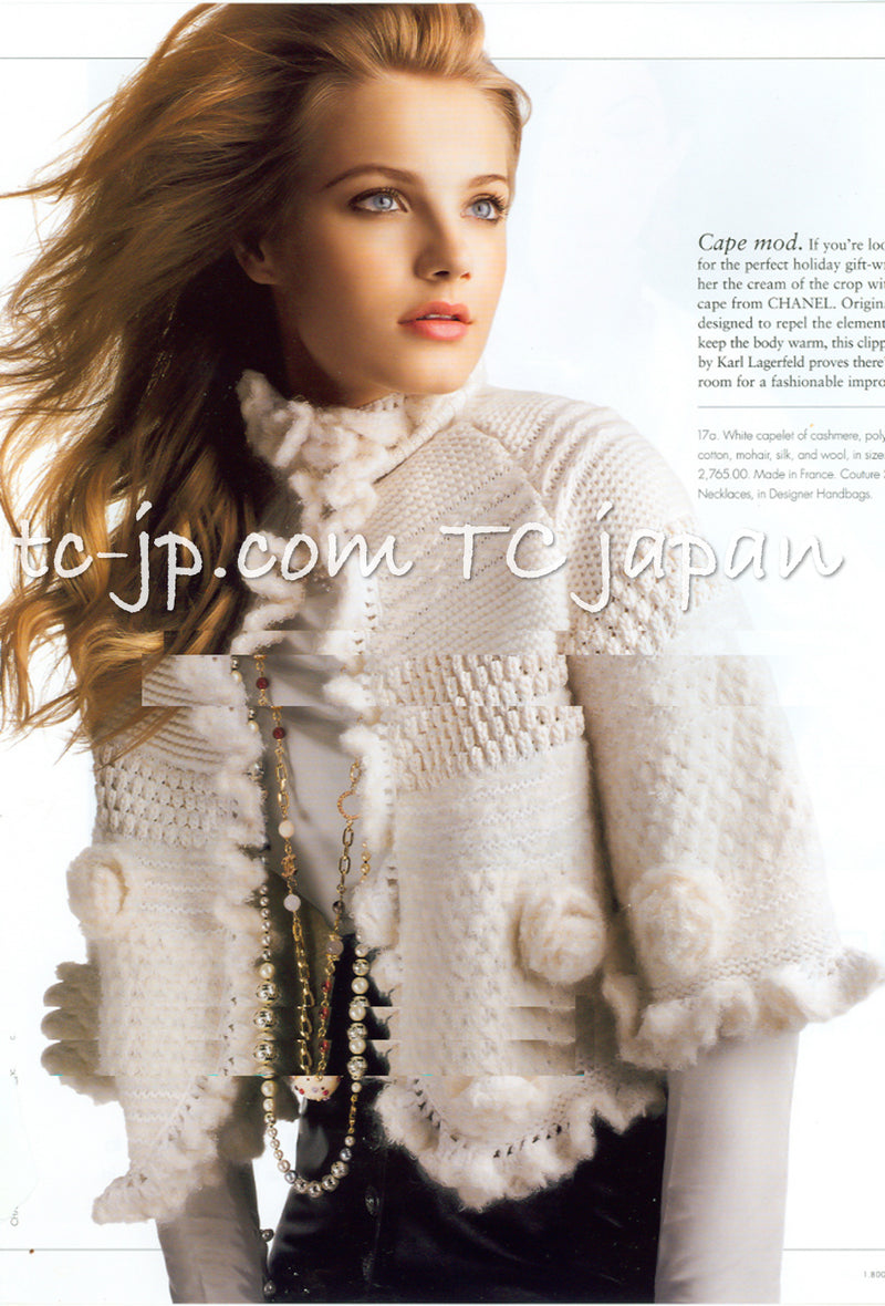 CHANEL 06A Ivory Creme Cashmere Mohair Cape Cardigan 38 46 48 50 シャネル カシミア モヘア アイボリー クリーム ポンチョ ケープ カーディガン 即発
