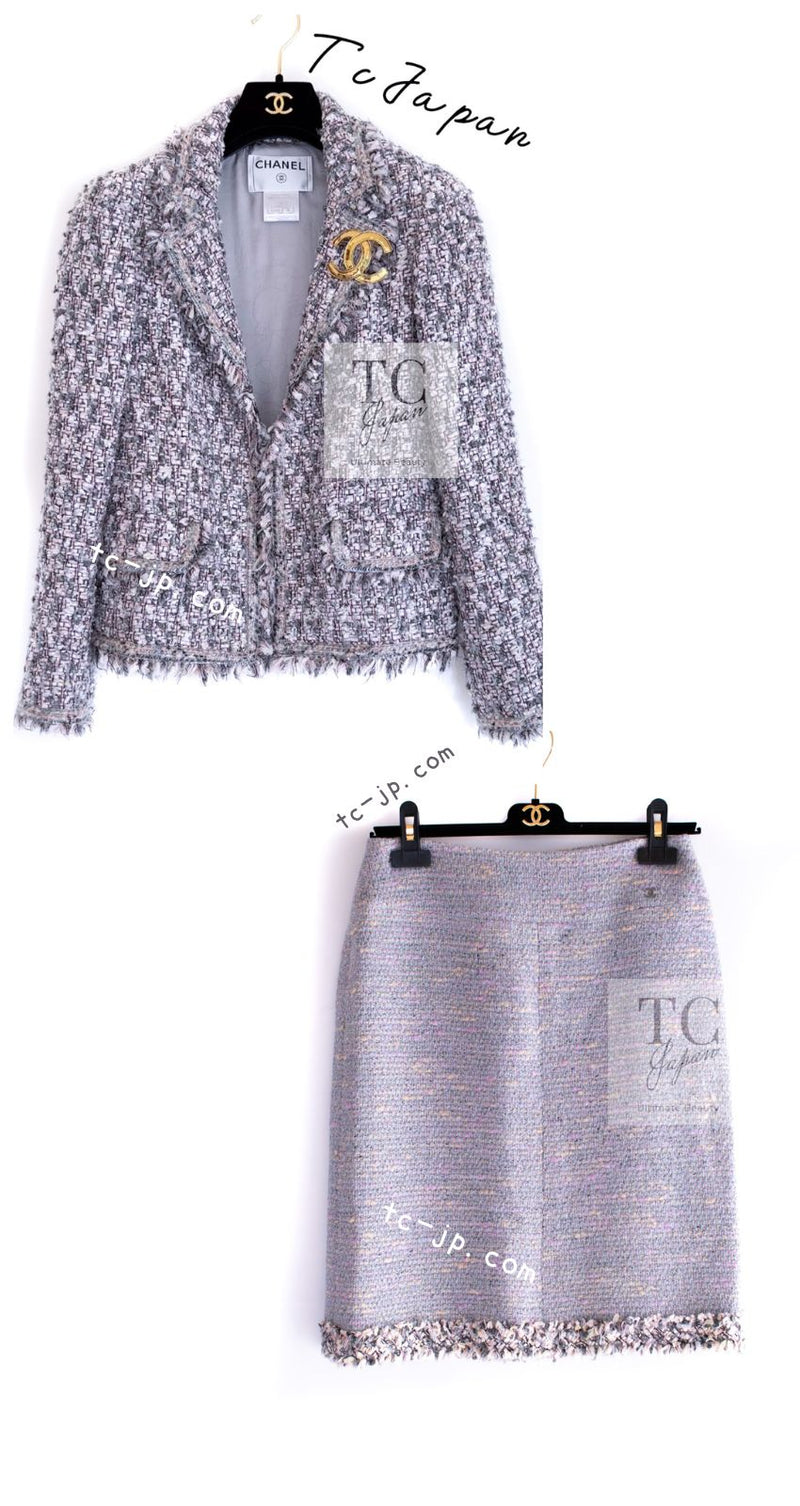 CHANEL 04A Gray Pink Lavender Multi Tweed Jacket Skirt Suit 38 シャネル グレー ピンク ラベンダー マルチカラー ツイード ジャケット スカート スーツ 即発