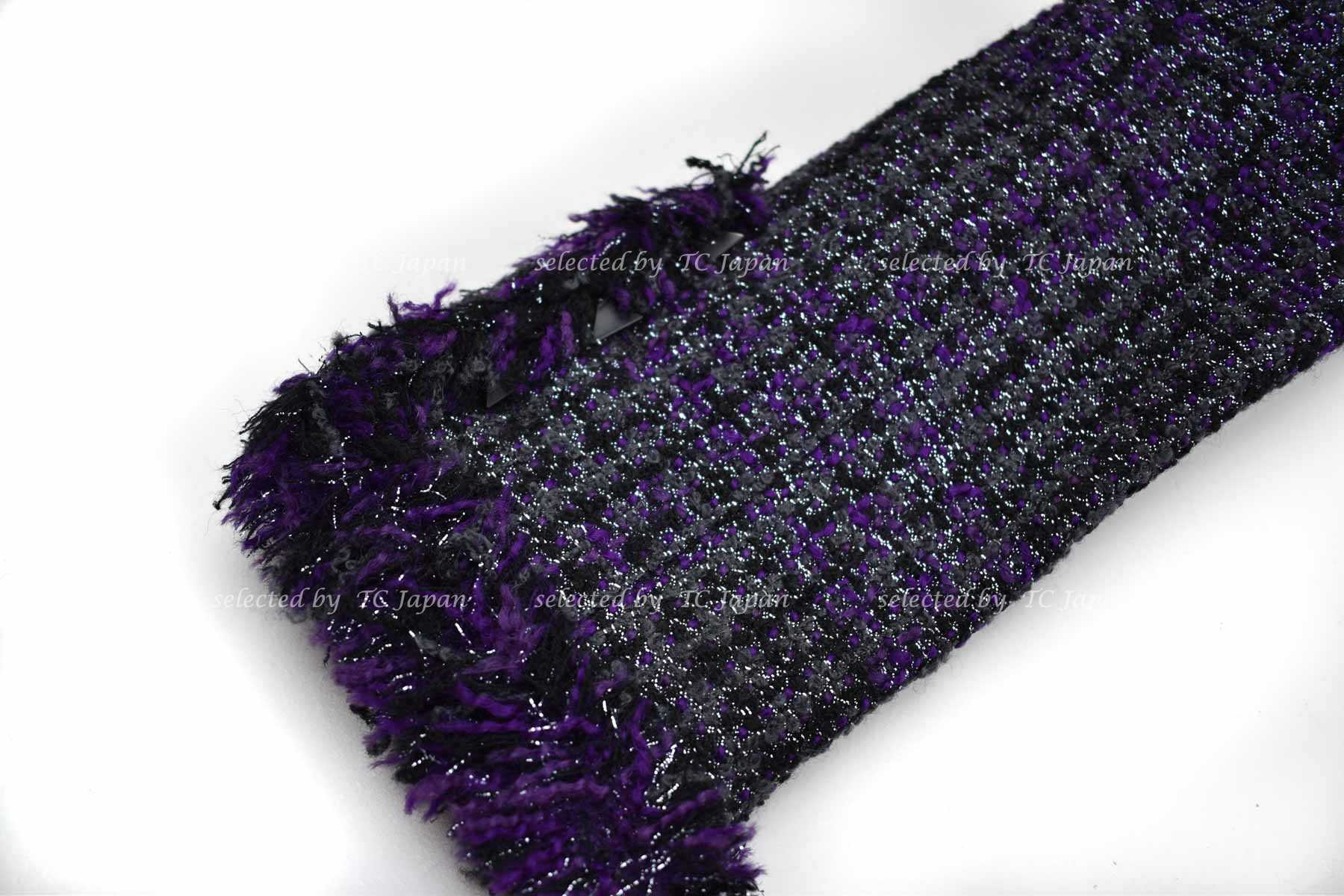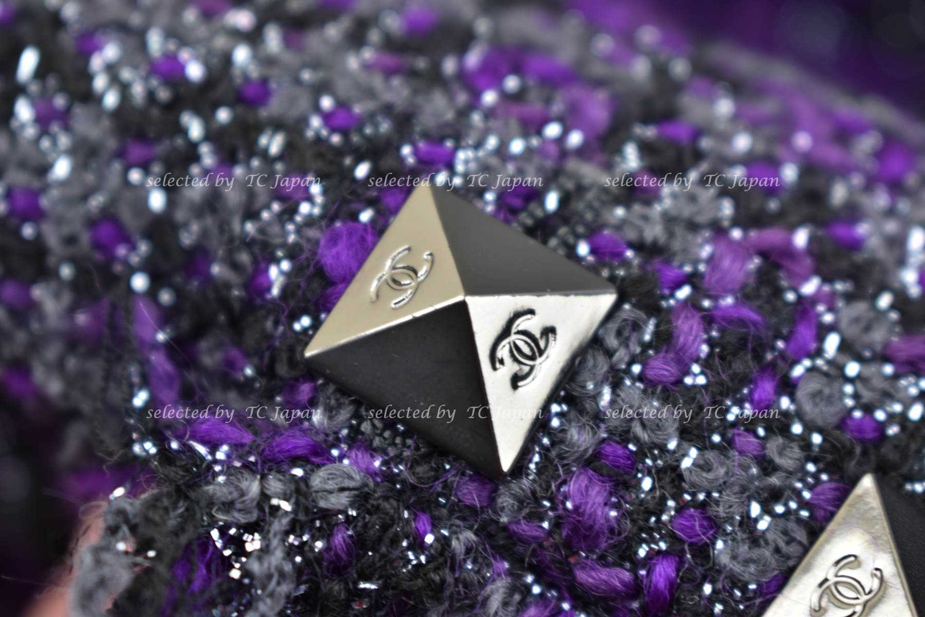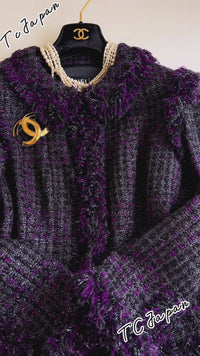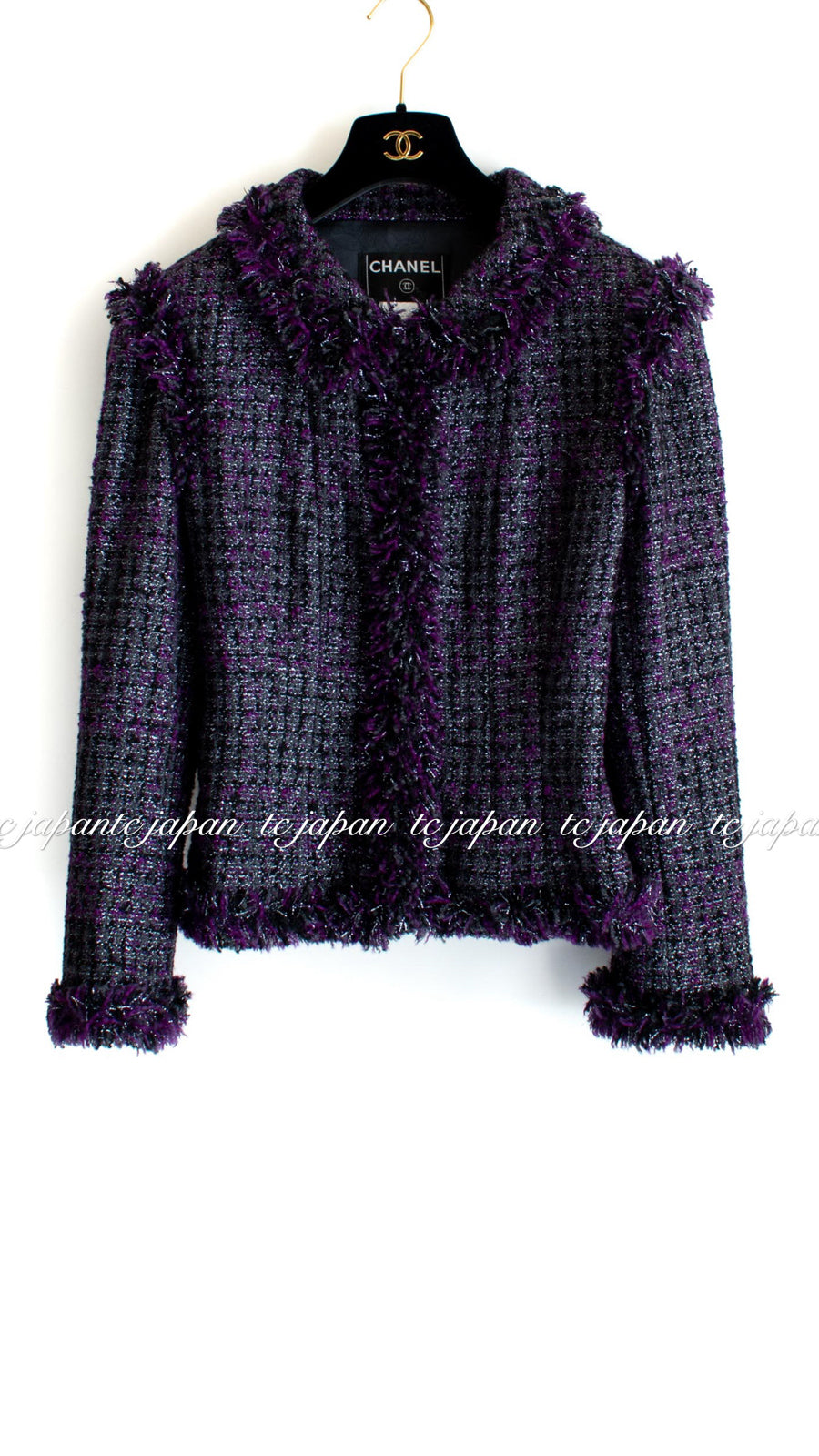 CHANEL 03A Purple Black Metallic Wool Tweed Jacket 38 40 シャネル パープル ブラック ウール ツイード ジャケット 即発
