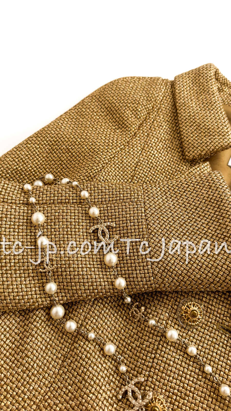 CHANEL 13C Gold Metallic Fringe Double Jacket 34 シャネル ゴールド メタリック ダブル ジャケット 即発