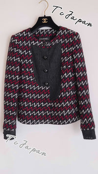 CHANEL 15S Keira Knightley Black Lace Cotton Tweed Jacket CC Button 46 シャネル キーラ ナイトレイ着用 ブラック ツイード ジャケット ココボタン 希少サイズ 即発