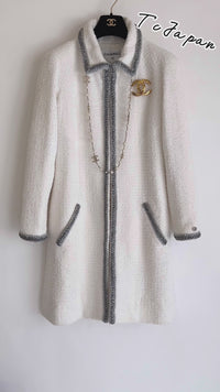 CHANEL 20S White Wool Cotton Braid Trim Beaded Tweed Jacket Coat 34 シャネル ジニー着 ホワイト ウール コットン ブレード トリム ビーズ ツイード ジャケット コート 即発